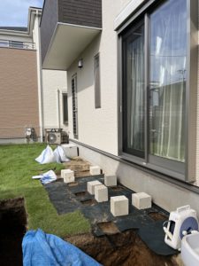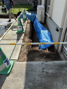 施主様のご要望は駐車スペース横の雑草対策と