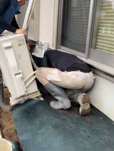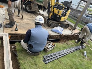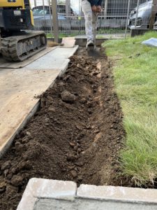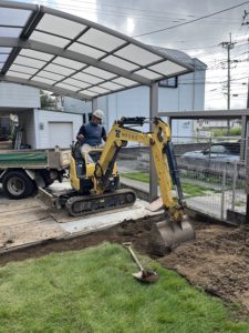 一旦、既存の芝をはがし掘削します。