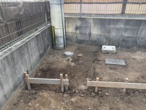 南側は山砂で整地した後、