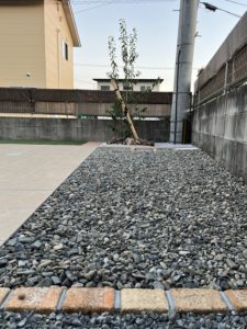 西側には防草シート240+川砂利を敷き