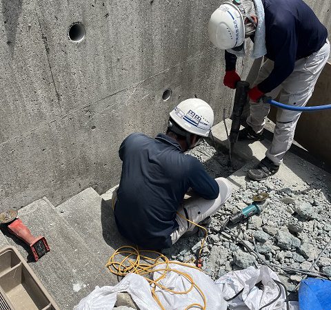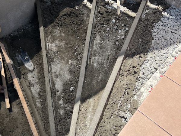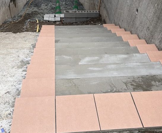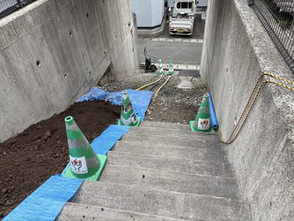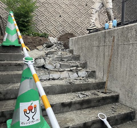 リフォーム工事により快適で安全な外構が完成しました熊本市西区にお住まいのお客様邸のご紹介です。駐車スペースの増設や既存の階段の老朽化、安全に昇降したいとのご希望です。既存の階段を解体し駐車スペースを確保し、駐車スペース奥に門柱、回り階段を新設しました。歩行や自転車を上まで押していきやすくするため、既存の階段の一部を解体し階段と併設しスロープを設けます。回り階段は簡易洗い出しにて仕上げ、既存の階段は300角タイル『グレイスランド コンテⅡcon-10』を貼り落ち着きのなかにも華やかさを演出しています。ガラスブロックを取り入れることで、門柱にやわらかな光が差し込み、重厚感の中にも抜け感が生まれました。門柱は施主様ご自身で塗装仕上げをされます。選ばれる配色によってガラスブロックの表情が変わり、モダンにもレトロにも演出できるのが魅力です。仕上がりがとても楽しみですね♪