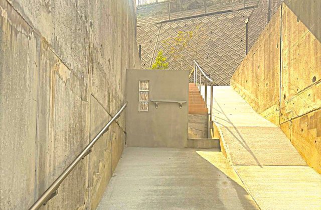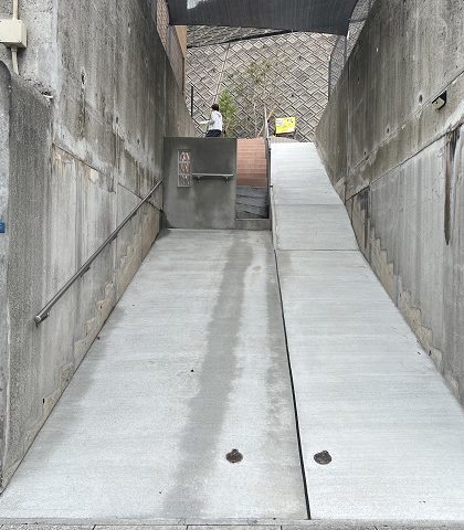 道路に接している既存の階段を解体し駐車スペースを確保し、土間コンクリートを打設。表面を滑りにくい刷毛引きで仕上げ駐車スペースの増設が完成しました。階段からスロープになったことで雨水の流れが良くなりメンテナンス作業が楽になったとお喜びです。女性の方でも楽に歩行できるようにと手摺りの設置をご希望され、『LIXIL グリップライン壁付け仕様』を施工しました。駐車スペースのスロープと階段の区切りに施工した門柱にも手摺を設置しています。階段とスロープが並行している箇所には共有して使用できるように手摺り『LIXIL グリップライン柱仕様』を設置しています。手摺りの設置のメリットとして手摺りを支えにすることで転倒防止になり安全性の向上,雨や霜でスロープが滑りやすいときも、安定して移動できます。今は必要なくても、将来の安心のためにあらかじめ設置しておくことで高齢期への備えとなることなどが挙げられます。