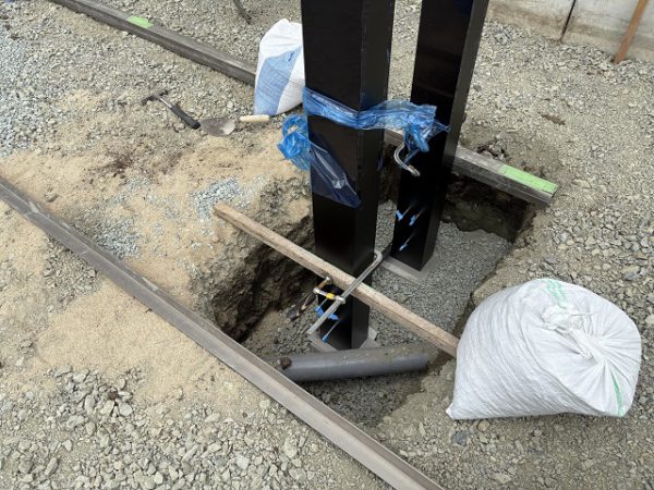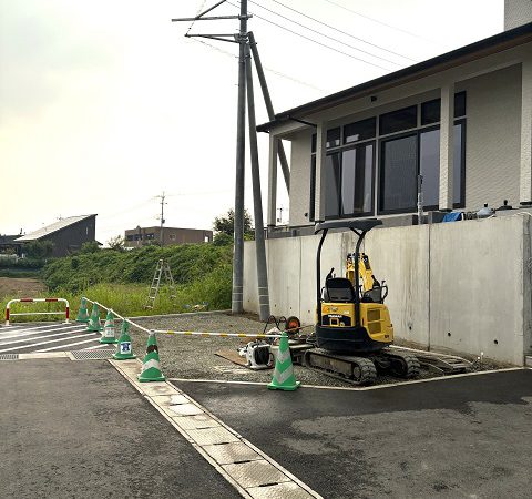 駐車・駐輪スペースを土間コンクリート打設のため掘削します。